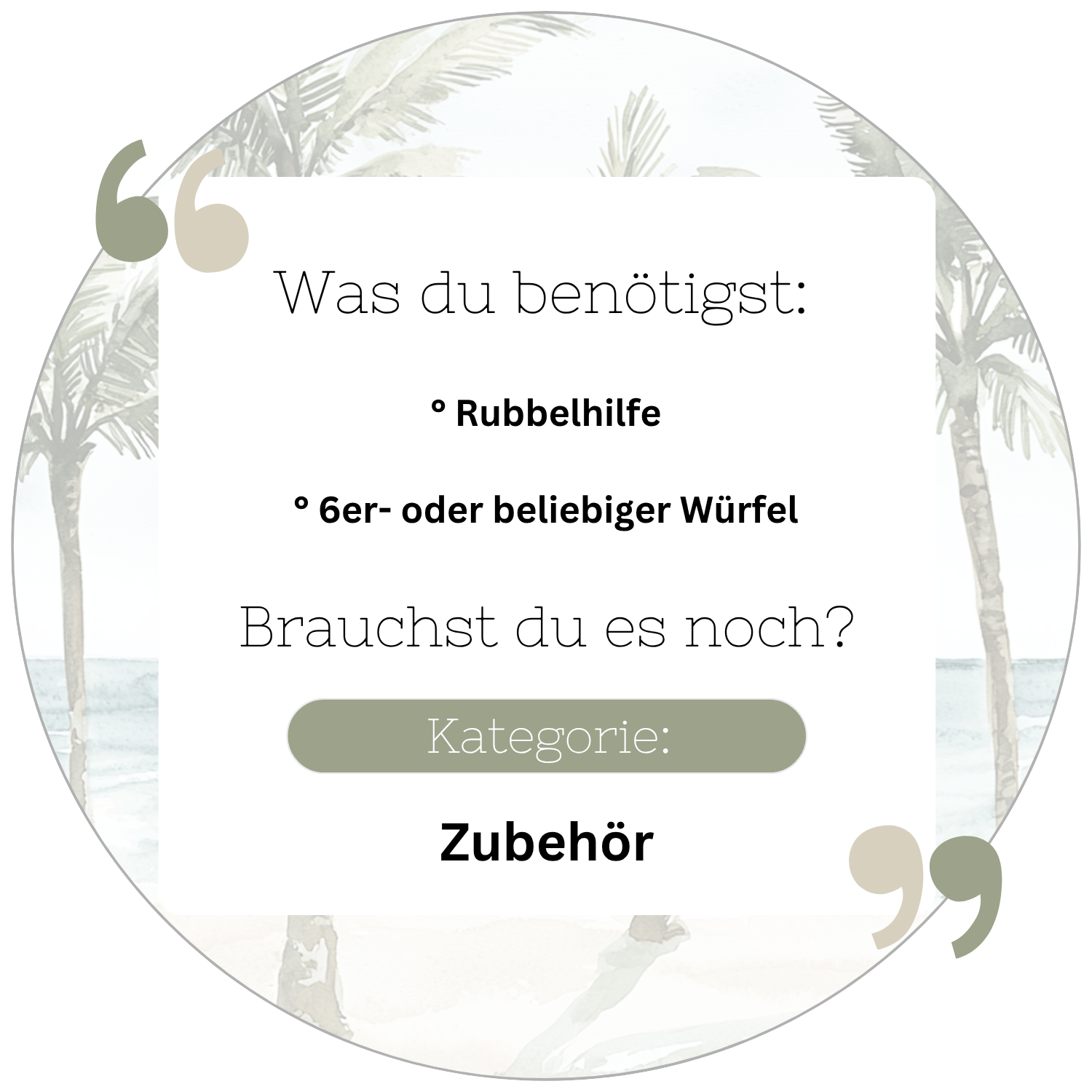 Du kannst dich auf dieser Challenge frei austoben. Es gibt hier keine Vorgaben in welcher Reihenfolge du alles erledigen musst. Du kannst Rubbeln, Würfeln und Abstreichen. Ideal zum Sparen für Zwischendurch für das nächste Essen im Urlaub.