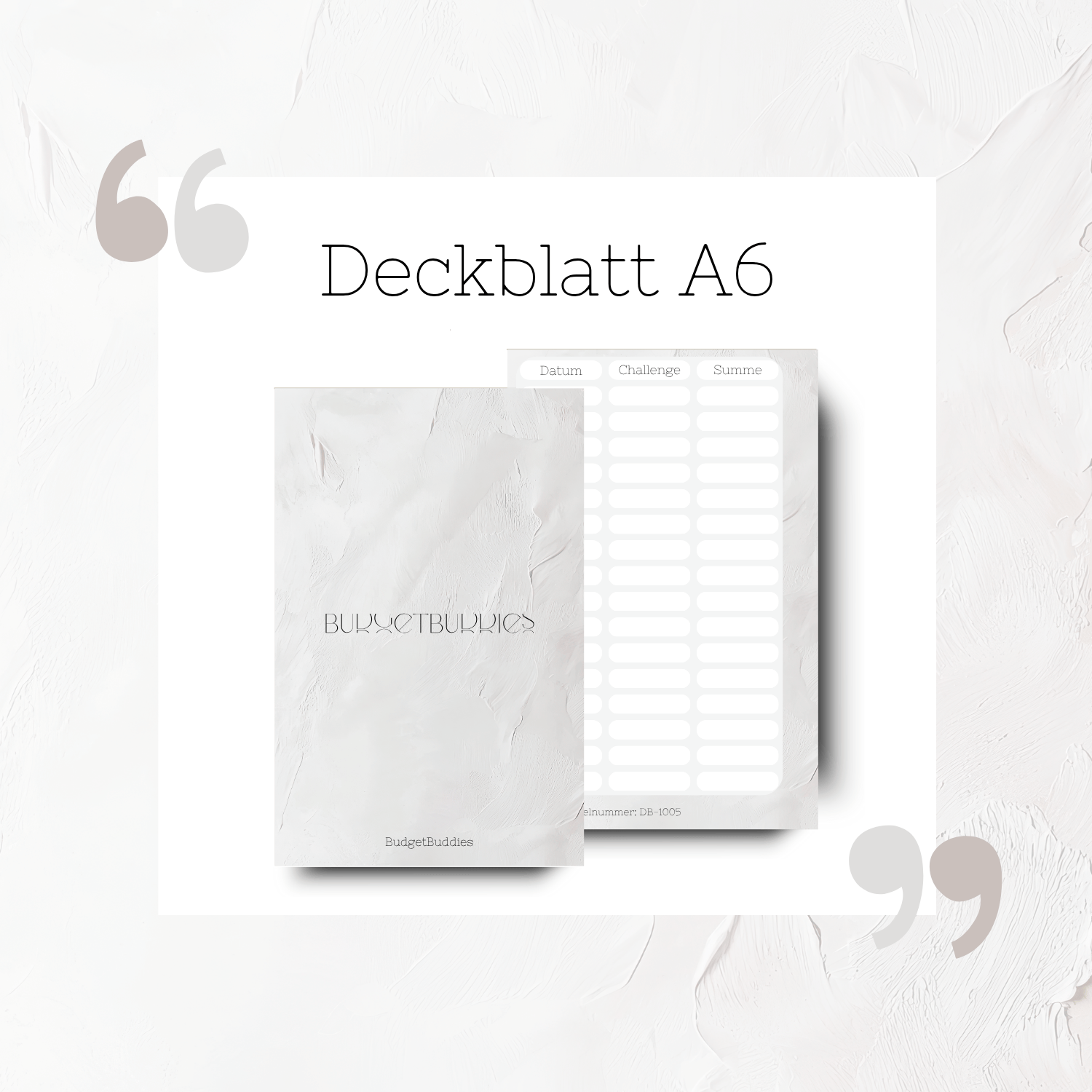 Deckblatt für deine BudgetBuddies Sparchallenges. Foliert.