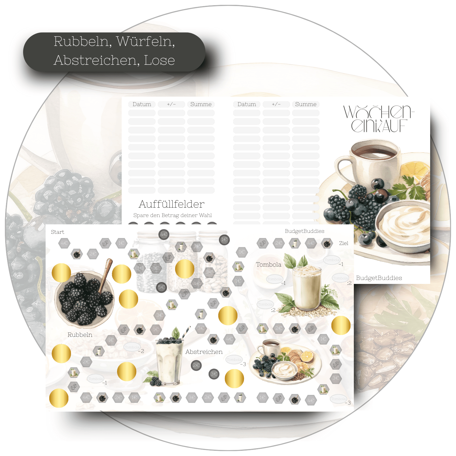 In dieser Challenge hast du einen Sparweg. Gehe der Reihenfolge nach und rubble, würfel, ziehe Lose bzw. streiche Beträge ab. Sollte dir ein Betrag zu hoch sein: Spare die Quersumme (12= 1+2). Die Challenge dient zum Sparen für deinen nächsten Wocheneinkauf.