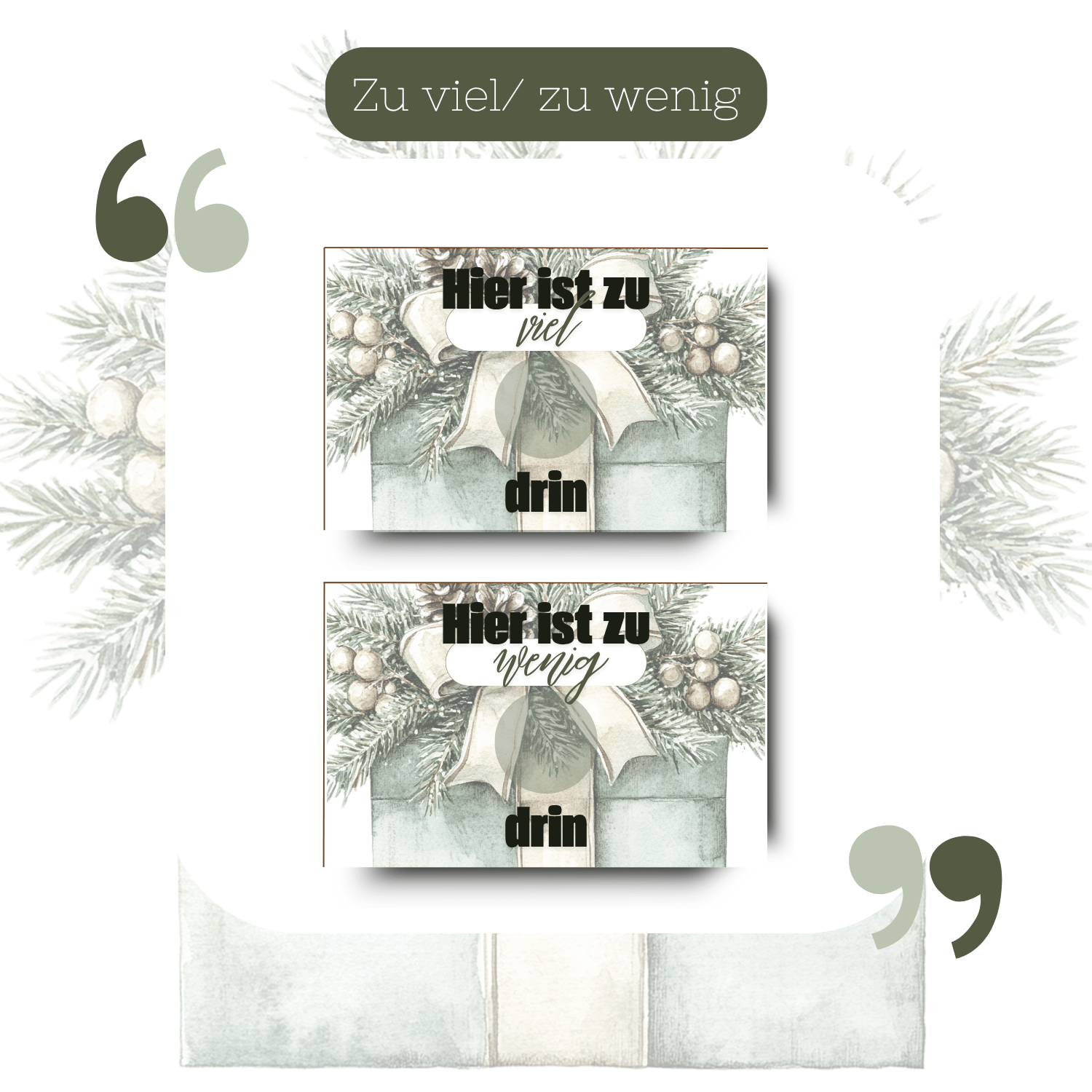 Zu viel / Zu wenig Kärtchen. Foliert. Vorder- und Rückseite bedruckt.